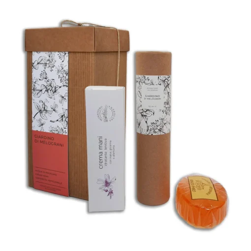 Objevte krásu a eleganci v dárkovém balení Zahrada granátových jablek, které spojuje tři voňavé poklady z klášterní kolekce. Tento set nabízí harmonii přírodních vůní, jemné péče o pokožku a hřejivé elegance — ideální jako dárek pro ženy, které milují vůně a přírodu.
